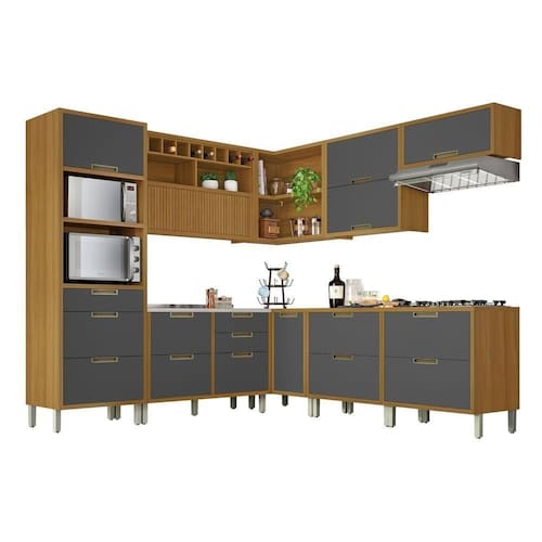 Cozinha 9 Peças ângulo Torre Quente 100% Mdf Imperatriz Nesher Freijó/grafite