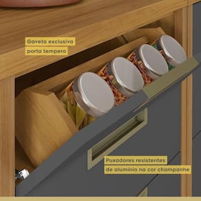 - Pratica gaveta porta temperos e gaveta com organizador de talheres.