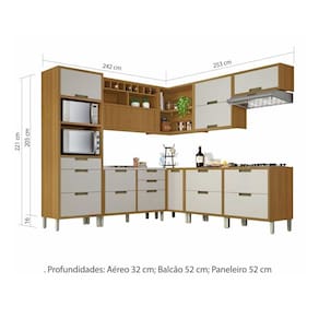 Cozinha 9 Peças ângulo Torre Quente 100% Mdf Imperatriz Nesher Freijó/off White