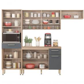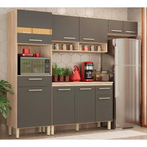 Cozinha Compacta Dama Com Balcão, possui espaço para organizar tudo o que você precisa e um design pensado para deixar o seu cômodo de chef mais bonito, estrutura em MDP de 15mm e 12mm, acabamento em pintura UV. Equipada com 09 portas articuladas com dobradiças metálicas, sendo que 01 porta possui detalhe com vidro reflecta garantindo um toque de modernidade, 02 gavetas com corrediças metálicas, puxadores e pés na cor champanhe, conta com espaço para forno ou microondas, nichos ideais para temperos, na interna conta com prateleiras e compartimentos muito bem divididos para você guardar alimentos, panelas, eletroportáteis, louças entre outros utensílios de forma organizada, o visual moderno oferece sofisticação e bom gosto para a decoração da sua cozinha, acompanha pés com regulagem de altura e um kit de ferragens de qualidade garantindo durabilidade e resistência ao móvel. Este móvel chegará em sua casa separado em 04 volumes.