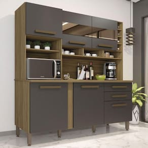 Cozinha Alexia 6 Portas 2 Gavetas Com Espelho Imop Móveis Nogal Grafite - Cinza