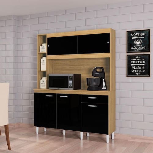 Cozinha Kit Duda 140 cm Damasco Preto Poquema