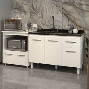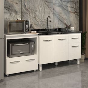 Organize sua cozinha com estilo e praticidade! Apresentamos o Kit Balcão Para Pia 118 cm Aline e Balcão Multiuso para Micro-ondas e Forno Elétrico Amanda.