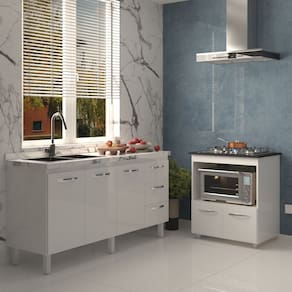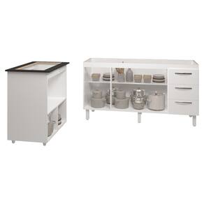 Cozinha Balcão Armário Gabinete de Pia 150 cm Deise e Balcão Evelyn para Fogão Cooktop 5 Bocas Branco