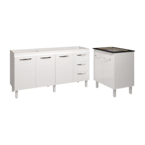 Características do Kit Montado: Largura total: 218 cm Profundidade: 53 cm Altura: 85 cm (com tampo do balcão de cooktop)