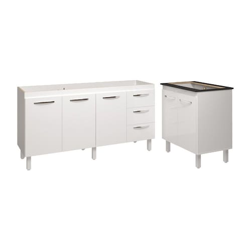 Cozinha Balcão Armário Gabinete de Pia 150 cm Deise e Balcão Fran para Fogão Cooktop 5 Bocas Branco