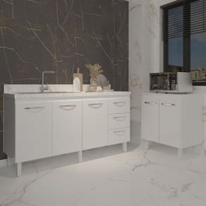 Conheça o Kit Balcão de Pia 150 cm + Balcão para Microondas ou Forno Elétrico, a solução ideal para quem deseja unir praticidade e elegância na cozinha. Com um design contemporâneo, o balcão de pia oferece 3 portas e 3 gavetas, garantindo amplo espaço para organizar seus utensílios. O balcão para cooktop possui duas portas, proporcionando uma cozinha mais funcional e eficiente. Produzido em MDP, com puxadores cromados e pés reguláveis, esse conjunto traz durabilidade e estilo, além de fácil nivelamento para qualquer ambiente.