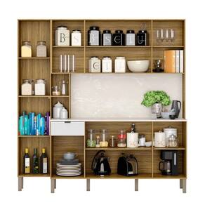 O Armário possui 9 portas e 1 gaveta com corrediças telescópicas destaca-se por sua praticidade e eficiência de uso, podendo ser utilizada como complemento de cozinha.