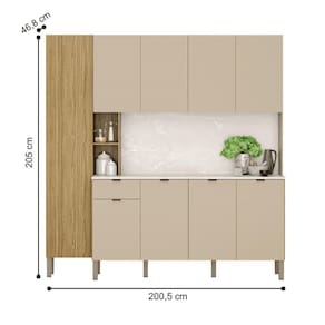 O Armário possui 9 portas e 1 gaveta com corrediças telescópicas destaca-se por sua praticidade e eficiência de uso, podendo ser utilizada como complemento de cozinha.
