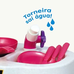 Com a Beauty Chef fazer comidinhas para criançada e brincar de imaginação é uma delícia! A torneirinha sai água, tem fogão por indução, microondas, forno, coifa e até cafeteira!