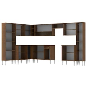 Ela é dividida em oito módulos independentes: paneleiro duplo; balcão de canto reto; armário aéreo de canto reto com duas portas e adega; balcão de pia; armário aéreo com duas portas e dois nichos; balcão com duas portas; armário aéreo com duas portas; paneleiro simples.