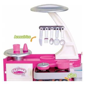 Descrição A Cozinha Classic da Cotiplás é cheia de estilo! Possui pia, fogão, forninho e vem repleta de acessórios. Tudo que um bom Chef precisa para preparar os melhores pratos! Uma cozinha super completa, os pequenos vão adorar brincar de assar, cozinhar e até lavar suas louças com sua torneirinha que saí água de verdade! Brinquedo que permite à criança imitar, imaginar, criar, simular e reproduzir situações do cotidiano familiar.Altura do Produto Montado:Altura : 76cmLargura: 62,5 cmCONTEÚDO DA EMBALAGEM : 01 Cozinha 01 Panela 01 Frigideira 01 Tampa 01 Copo 01 Prato 01 Saleiro 01 Colher 01 Faca 01 Garfo 01 Espátula 01 Concha