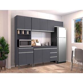 Cozinha com Balcão e Tampo 120 cm Andréia Ambiente Cinza Fosco - AJL