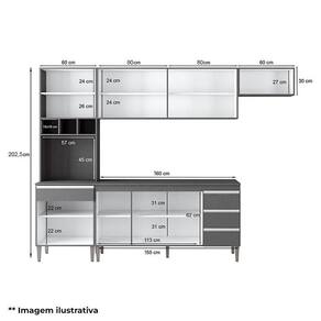 Cozinha com Balcão e Tampo 160cm Andréia Amêndoa Branco - AJL