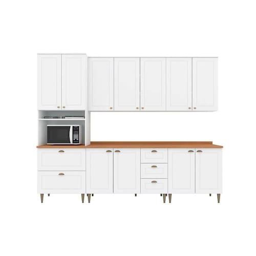 Cozinha Completa Americana c/ Pés 7 Peças (2Aéreos+2Balcões+1Paneleiro+2Complementos) C5P60 Branco - Henn Abaixo segue os produtos que compoem o KIT: