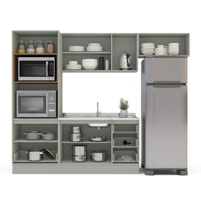 A Cozinha Rubi Yescasa é a escolha perfeita para quem busca sofisticação e praticidade no dia a dia. Com puxadores ponto que trazem um toque elegante e moderno, ela conta com acabamento em pintura UV, garantindo maior resistência, durabilidade e brilho às peças. Seu amplo espaço de 270 cm de largura, 214 cm de altura e 49 cm de profundidade oferece organização inteligente para todos os utensílios. O modelo ainda inclui torre quente, ideal para forno e micro-ondas, armário basculante, balccão com espaço para pia e conjunto de armários aéreos. Completa e funcional, essa cozinha une design, qualidade e praticidade para transformar o coração da sua casa. Acabamento da Prateleira: Pintura Escala de Brilho da Prateleira: Semi-Fosco Acabamento da Gaveta: Pintura Escala de Brilho da Gaveta: Semi-Fosco Material do Puxador da Gaveta: Plástico Acabamento da Porta: Pintura Texturizada UV Escala de Brilho da Porta: Semi-Fosco Acompanha Rodapé Decorativo: Sim Acompanha Tampo: Não Ambiente Principal: Cozinha Balcão Suporta Pia: Sim codigo_ean: 7900288237248 Complexidade da Montagem: Alta: deve ser montado por um montador especializado Cor: Verde Oliva Cor do Produto: Verde Oliva Cor Interna: Verde Oliva Escala de Brilho: Semi-Fosco Gaveta com Chave: Não Itens Inclusos: 1 Cozinha Completa, Kit Ferragens, Manual de Montagem e Termo de Garantia Linha ou Coleção: Rubi Manual de Montagem e Instalação: https://product-hub-prd.madeiramadeira.com.br/615163961/documents/659e144d-cc8a-44a1-a842-1e39bd2a5c583202328622417579405373622.pdf Marca: Yescasa Material da Corrediça: Metálica Material da Dobradiça/Corrediça da Porta: Metálica Material da Gaveta: MDP Material da Porta: MDP Material da Prateleira: MDP Material dos Pés: MDP Medida de cada item (A x L x P): Balcão 3 gavetas (81cm x 120cm x 49cm); Aéreo 3 portas (59cm x 120cm x 29cm); Aéreo Basculante (35,7cm x 80cm x 29cm); Torre quente (214cm x 70cm x 49cm) modular: Sim Necessita Montagem: Sim O Balcão Acompanha Pia: Não Origem do Produto: Nacional Pés Reguláveis: Não Peso: 106,76 kg Peso Máximo por Gaveta: 5 kg Peso Máximo por Prateleira: 5 kg Possui Pés: Rodapé Possui Portas: Sim Possui Prateleiras: Sim Possui recorte para Cooktop: Não Possui Rodízio: Não Possui Vidro: Não Produto Montado: Sim Recomendações de Uso, Manutenção e Limpeza: Utilize um pano macio umedecido com água e sabão neutro, seguido de pano seco. Não utilize produtos químicos ou abrasivos para limpeza, pois estes danificam o revestimento do móvel. Sapatas Niveladoras: Não Sistema de Montagem: Cavilha, Parafuso, Minifix e prego. Acompanha bucha e parafuso para fixação na parede Suporta Até (kg): 30 kg Tamanho Indicado da Pia: 120x49 Tamanho Indicado do Tampo: 120x49 Tipo de Corrediça da Gaveta: Metálica Telescópica Tipo de Dobradiça da Porta: Simples Tipo de Dobradiça/Corrediça da Porta: Simples Tipo de Puxador da Gaveta: Externo Tipo de Puxador da Porta: Externo