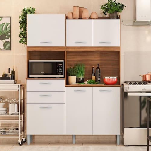 Cozinha Compacta 06 Portas 02 Gavetas Harmonia Amêndola Branco Demóbile