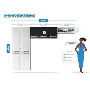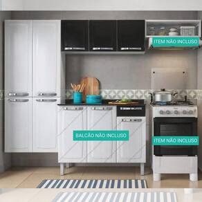 Cozinha Compacta 3 Peças - 1 Armário Aéreo 1 Paneleiro E 1 Nicho Rose Itatiaia Branco/Preto