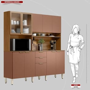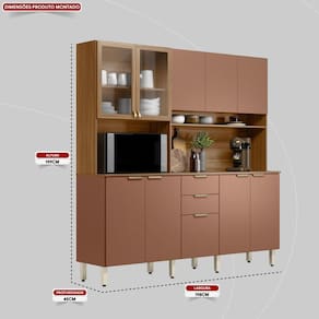 Com design em linhas retas, o Kit Cozinha Amora tem amplas dimensões e acabamento Prime TX. Você pode armazenar inúmeros utensílios nas gavetas, panelas e eletroportáteis nas portas de giro com prateleiras internas. Com espaço dedicado ao forno elétrico ou microondas para mais praticidade no dia a dia, o Kit Cozinha Amora tem um nicho para deixar sempre à mão seus temperos preferidos, snacks ou para lindas decorações. A experiência com o Kit Cozinha Amora fica ainda mais incrível com a ampla bancada, que você pode usar para auxiliar no preparo de alimentos ou para montar um "cantinho do café". E para mais durabilidade, o Kit Cozinha Amora é equipado com pés com regulagem de altura para nivelar o móvel em relação ao piso e proteger o móvel da umidade. Acabamento da Prateleira: Pintura UV Escala de Brilho da Prateleira: Fosco Acabamento da Gaveta: Pintura UV Escala de Brilho da Gaveta: Fosco Material do Puxador da Gaveta: ABS Acabamento da Porta: Pintura/Vidro Escala de Brilho da Porta: Fosco Material do Puxador da Porta: ABS Acabamento dos Pés: Pintura Acompanha Tampo: Sim Altura dos Pés: 5 Altura Máxima dos Pés: 5.0000 Ambiente Principal: Cozinha codigo_ean: 7909903474235 Complexidade da Montagem: Alta: deve ser montado por um montador especializado Cor: Amêndola Touch/Marsala Prime TX Cor do Produto: Amêndola Touch/Marsala Prime TX Cor Flex: Não Cor Interna: Amêndola Escala de Brilho: Fosco Espessura do Material da Estrutura: 15 mm Espessura do Tampo: 15 mm Gaveta com Chave: Não Itens Inclusos: 1 Cozinha, Kit Ferragens e Manual de Montagem Linha ou Coleção: Linha Amora Manual de Montagem e Instalação: https://product-hub-prd.madeiramadeira.com.br/877758/documents/0614f276-947e-43ce-b5f7-81386568fa3d41826manualdemontagem98221.pdf Material da Dobradiça/Corrediça da Porta: Metálica Material da Gaveta: MDP Material da Porta: MDP Material da Prateleira: MDP Material do Fundo: MDP Material do Tampo: MDP Material dos Pés: Metal modular: Não Montagem Flex: Não Necessita Montagem: Sim O Balcão Acompanha Pia: Não Origem do Produto: Nacional Pés Reguláveis: Sim Peso: 95,5 kg Peso Máximo por Gaveta: 3 kg Peso Máximo por Prateleira: 5 kg Possui Pés: 08 Possui Portas: Sim Possui Prateleiras: Sim Possui recorte para Cooktop: Não Possui Rodízio: Não Possui Vidro: Sim Produto Montado: Sim Recomendações de Uso, Manutenção e Limpeza: Utilizar flanela seca. Sapatas Niveladoras: Não Sistema de Montagem: Parafusos/Cavilhas Suporta Até (kg): 78 kg Tamanho Indicado da Pia: N/A Tipo de Corrediça da Gaveta: Metálica Telescópica Tipo de Dobradiça da Porta: Simples Tipo de Puxador da Gaveta: Externo Tipo de Puxador da Porta: Externo Ean: 7909903474235