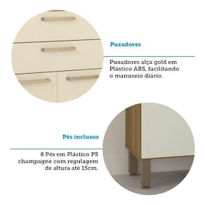 Desenvolvida para quem busca qualidade e charme, a Cozinha 355 e perfeita! Estruturas em 100 MDP que oferecem maior resistencia e durabilidade ao movel. Possui estilo classicos, garantindo conforto e aconchego para sua Cozinha. Ideal para espacos menores.