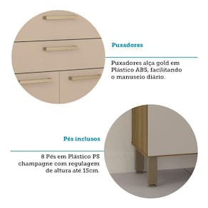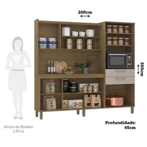 Informacoes Complementares: Tampo 15mm. Fundos em HDF 3mm. Permite o uso de forno ou micro-ondas. ATENCAO: Na utilizacao de FORNO ELETRICO/GAS e obrigatoria a retirada do fundo (risco de super aquecimento). As dimensoes maximas do forno devem respeitar a margem de respiro, necessitando folga de 5cm entre forno e laterais do movel.