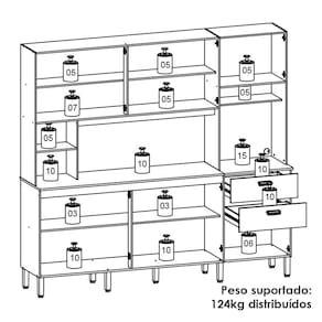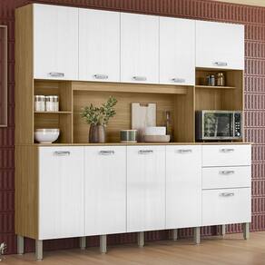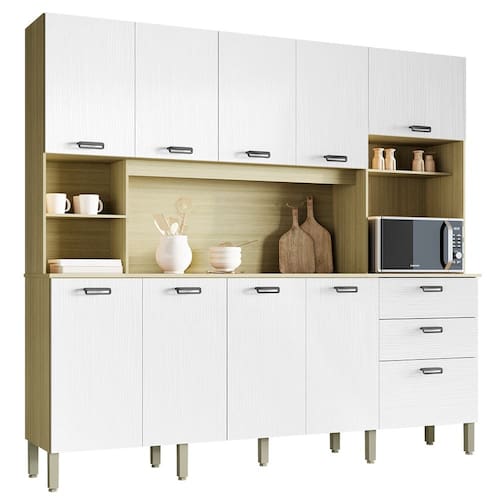 Perfeita para otimizar ambientes com praticidade e estilo, a Cozinha Compacta é produzida em MDP de 12mm e 15mm. Possui 10 portas e 02 gavetas, equipadas com dobradiças e corrediças telescópicas 100% metálicas, além de prateleiras internas, nichos decorativos e espaço funcional para forno elétrico ou micro-ondas. Os pés reguláveis são fabricados em plástico resistente, e os puxadores em ABS com pintura inox. O acabamento em pintura UV (fosco ou semibrilho) completa o visual moderno do móvel. Este móvel chegará em sua casa separado em 03 volumes.
