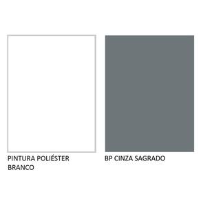 O acabamento da estrutura é branco e o das portas e frentes é cinza. É feito em Pintura Poliéster ecológica, com 7 camadas que protegem o móvel contra os efeitos do álcool, da água e do calor.