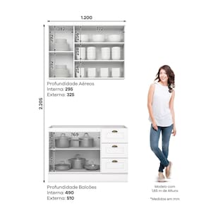 A Cozinha Compacta 2 Peças 100% MDF Internacional apresenta corrediças telescópicas, é fabricada 100% em MDF e possui dobradiças metálicas de 35 mm com amortecimento. Seus puxadores em metal Zamac na cor ouro velho adicionam um toque de elegância vintage. É uma escolha que une praticidade, durabilidade e estilo contemporâneo. Acabamento da Prateleira: Pintura Texturizada UV Escala de Brilho da Prateleira: Fosco Acabamento da Gaveta: Pintura Texturizada UV Escala de Brilho da Gaveta: Fosco Acabamento da Porta: Pintura Texturizada UV Escala de Brilho da Porta: Fosco Material do Puxador da Porta: Alumínio Acompanha Rodapé Decorativo: Não Acompanha Tampo: Não Ambiente Principal: Cozinha Balcão Suporta Pia: Sim codigo_ean: 7909903733004 Complexidade da Montagem: Média: pode ser montado por mais de uma pessoa e/ou necessite de maior conhecimento para montagem Cor: Branco HP Cor do Produto: Branco HP Cor Flex: Branco HP Cor Interna: Trama Escala de Brilho: Fosco Espessura do Material da Estrutura: 15 mm Gaveta com Chave: Não Itens Inclusos: 1 Cozinha e Manual de Montagem Linha ou Coleção: Internacional Manual de Montagem e Instalação: https://product-hub-prd.madeiramadeira.com.br/912887/documents/44523fe3-6864-4787-92b4-9787dd93af882026005432517175951127048.pdf Marca: Henn Material da Corrediça: Metálica Material da Dobradiça/Corrediça da Porta: Metálica Material da Gaveta: MDF Material da Porta: MDF Material da Prateleira: MDF Material do Fundo: mdf Medida de cada item (A x L x P): Armário aéreo: 83 cm X 120 X 32,5 cm e Balcão: 82 cm X 120 cm X 51 modular: Não Necessita Montagem: Sim O Balcão Acompanha Pia: Não Origem do Produto: Nacional Peso: 73 kg Peso Máximo por Gaveta: 3 kg Peso Máximo por Prateleira: 8 kg Possui Pés: Não Possui Portas: Sim Possui Prateleiras: Sim Possui recorte para Cooktop: Não Possui Vidro: Não Produto Montado: Sim Recomendações de Uso, Manutenção e Limpeza: Recomendações de Uso, Manutenções e Limpeza: Para limpeza de seu móvel, use uma flanela limpa e seca. Não utilize produtos químicos que possam danificar o produto. Sistema de Montagem: Parafusos e Cavilhas Suporta Até (kg): 40 kg Tamanho Indicado da Pia: (L x P) 120 x 53,5cm Tamanho Indicado do Tampo: (L x P) 120 x 53,5cm Tamanho Indicado do Tampo ou Pia: (L x P) 120 x 53,5cm Tipo de Corrediça da Gaveta: Metálica Telescópica Tipo de Dobradiça da Porta: Soft close Tipo de Puxador da Gaveta: Externo Tipo de Puxador da Porta: Externo