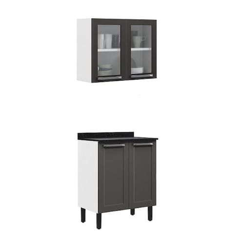Cozinha compacta 2 Peças 4 Portas Florença Itatiaia Grafite/Branco - Cinza