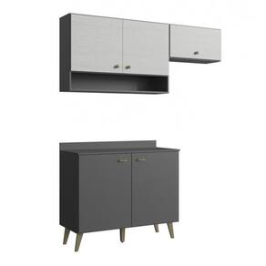 A cozinha completa Atena GraLar é moderna, bonita e desenvolvida com materiais de altíssima qualidade. Igualmente como uma cozinha planejada, seus módulos são separados, podendo ser montados conforme a disposição desejada. Internamente é bem dividida, possui 05 (cinco) portas e 02 (duas) prateleiras, oferecendo uma excelente distribuição para que você organize toda a sua louça e alimentos. Possui puxadores em ABS e dobradiças metálicas. Altura do Conjunto: 210 cm Ambiente Principal: Cozinha codigo_ean: 7909903314517 Cor: Grafite/Snow Cor do Produto: Grafite/Snow Informação Complementar: 1x Balcão para Pia com Tampo 2 Portas Atena GraLar GrafiteLargura: 105Altura: 94.5Peso: 26.6Profundidade: 45Necessita Montagem: Sim1x Armário Aéreo de Cozinha 3 Portas Atenas GraLar Grafite/SnowLargura: 170 cmAltura: 69 cmPeso: 25,3 kgProfundidade: 27 cmNecessita Montagem: Sim Possui Rodízio: Não