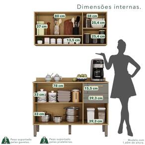 Você nunca imaginou que sua Cozinha pudesse ficar tão organizada. Com este Armário de Cozinha Combo Bella 04 o espaço fica ainda mais convidativo e sempre pronto para preparar pratos incríveis, otimizando o espaço para guardar seus utensílios. Confeccionado com materiais de resistência, qualidade e inovação ele é a melhor opção para completar o ambiente, cores modernas que combinam com tudo que escolher. Acabamento da Prateleira: Pintura Escala de Brilho da Prateleira: Brilhante Acabamento da Gaveta: Pintura UV Escala de Brilho da Gaveta: Brilhante Material do Puxador da Gaveta: MDF Acabamento da Porta: Pintura Escala de Brilho da Porta: Brilhante Material do Puxador da Porta: MDF Acabamento dos Pés: Pintura Acompanha Tampo: Sim Altura dos Pés: 16 cm Altura Máxima dos Pés: 16.0000 Ambiente Principal: Cozinha Balcão Suporta Pia: Não codigo_ean: 7900288316455 Complexidade da Montagem: Alta: deve ser montado por um montador especializado Cor: Jequitibá/Granizo Cor do Produto: Jequitibá/Granizo Escala de Brilho: Semi-Fosco Espessura do Tampo: 15 mm Gaveta com Chave: Não Itens Inclusos: 1 Cozinha Compacta, Manual de Montagem e Kit Ferragens. Linha ou Coleção: Bella Manual de Montagem e Instalação: https://product-hub-prd.madeiramadeira.com.br/547761956/documents/050aae16-dba3-4147-b1e6-31086a9a3149f021686609manualvalencia04.pdf Marca: Sallêto Móveis Material da Corrediça: Metálica Material da Dobradiça/Corrediça da Porta: Metálica Material da Gaveta: MDP Material da Porta: MDP Material da Prateleira: MDP Material do Fundo: MDF Material do Tampo: MDP Material dos Pés: Polipropileno Medida de cada item (A x L x P): Armário Aéreo Reflecta 54,5cmx120cmx26cm; Balcão 85,5cmx120cmx36,5cm modular: Sim Necessita Montagem: Sim O Balcão Acompanha Pia: Não Origem do Produto: Nacional Pés Reguláveis: Sim Peso: 43,6 kg Peso Máximo por Gaveta: 5 kg Peso Máximo por Prateleira: 5 kg Possui Pés: 03 Possui Portas: Sim Possui Prateleiras: Sim Possui recorte para Cooktop: Não Possui Rodízio: Não Possui Vidro: Sim Produto Montado: Sim Recomendações de Uso, Manutenção e Limpeza: Limpar com flanela limpa e seca. Não usar produtos abrasivos. Sapatas Niveladoras: Sim Sistema de Montagem: Parafusos e cavilhas Tamanho Indicado da Pia: Não possui. Tipo de Corrediça da Gaveta: Metálica Telescópica Tipo de Dobradiça da Porta: 35 mm Tipo de Puxador da Gaveta: Externo Tipo de Puxador da Porta: Externo Marca: Não Informado