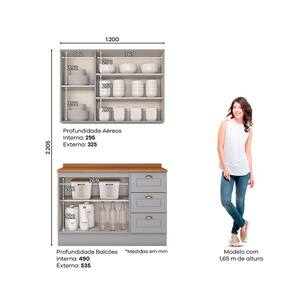 FICHA TÉCNICA: Cor Interna: Na versão Branco HP é Trama Branco e na versão Cinza é Trama Acabamento: Pintura UV Texturizada Escala de Brilho: Fosco Material do Fundo: MDF Material Principal: MDF Qtd. Gavetas: 3 Und Peso Máximo por Gaveta: 3 Kg Material do Puxador Gaveta: Metal Zamac Material da Corrediça: Metálica Telescópica Material da Gaveta: MDF Qtd. Portas: 5 Und Material da Dobradiça: Metálica em 35mm com fechamento suave -Amortecimento-. Material do Puxador Porta: Metal Zamac Tipo Porta: Bater Qtd. Prateleiras: 4 Und Peso Máximo por Prateleira: 8 Kg Material da Prateleira: MDF Qtd. Pés: 0, Possui rodapé Material Pés: MDF Altura Pés/Rodapés: 14,5 Cm Balcão Acompanha Pia: Não Tamanho Indicado da Pia: 120cm x 52cm Acompanha Tampo: Sim Material do Tampo: Na versão Calcare é MDP BP e na versão Nature é MDF Produto Suporte até -Kg-: 97 Kg Medidas Conjunto Montado -AxLxP-: 220,5 x 120 x 53,5 Cm Peso Conjunto Montado: 84 Kg