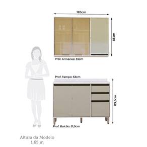 Ambiente composto por: 1-Balcao de Pia sem Tampo para Cozinha 120cm 2 Portas de Abrir, 3 Gavetas Linea Luciane Moveis -87 x 120 x 51,5- 1-Armario Aereo de Cozinha 120 cm 1 Porta Fechada 2 Portas com Vidro Reflecta Linea Luciane Moveis -85 x 120 x 33- 1-Tampo para Balcao 120cm MDP Linea Luciane Moveis -2,5 x 120 x 53-