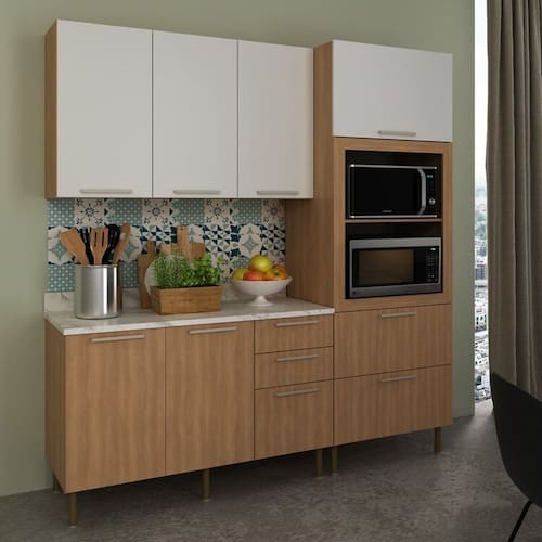 1x Torre Quente 80cm para Forno e Micro-ondas com 1 Porta Basculante e 2 Gavetas Freij?/Branco Largura: 80 cm Altura: 222 cm Peso: 62 kg Profundidade: 50,8 cm Necessita Montagem: Sim