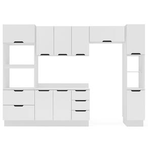 Características: Estrutura MDP Pintura FF/UV 07 Portas Articuladas com Dobradiças Metálicas 03 Portas Basculantes com Pistão à Gás 04 Gavetas com corrediças Metálicas 04 Nichos Puxadores de Plástico Possui Prateleiras com Amplo Espaço Possui Rodapé Peso Suportado nas Prateleiras Estruturais: 10kg Distribuídos Peso Suportado nas Prateleiras: 5kg Distribuídos Peso Suportado nas Gavetas: 3kg Distribuídos *ACOMPANHA TAMPO*