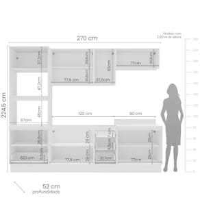Dimensões do Balcão: Altura: 92,5 cm Largura: 80 cm Profundidade: 52 cm