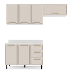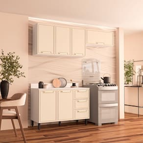 Cozinha Compacta 250087 3 Peças Amara Branco Creme Politorno Móveis - Branco | Bege