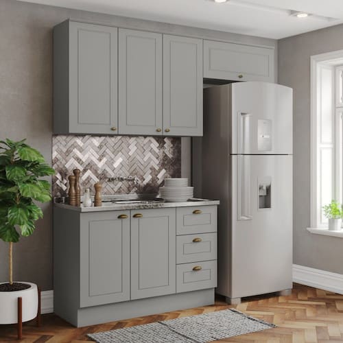 O(a) Cozinha Compacta 3 Peças 100% Mdf Americana Cinza - Henn é produzido em MDF na escala de brilho Fosco, e possui um grau de dificuldade de montagem: Médio.