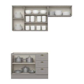 A Cozinha Compacta 2 Peças 100% MDF Internacional apresenta corrediças telescópicas, é fabricada 100% em MDF e possui dobradiças metálicas de 35 mm com amortecimento. Seus puxadores em metal Zamac na cor ouro velho adicionam um toque de elegância vintage. É uma escolha que une praticidade, durabilidade e estilo contemporâneo. Acabamento da Prateleira: Pintura Texturizada UV Escala de Brilho da Prateleira: Fosco Acabamento da Gaveta: Pintura Texturizada UV Escala de Brilho da Gaveta: Fosco Material do Puxador da Gaveta: Metal Acabamento da Porta: Pintura Texturizada UV Escala de Brilho da Porta: Fosco Material do Puxador da Porta: Alumínio Acompanha Tampo: Não Ambiente Principal: Cozinha Complexidade da Montagem: Média: pode ser montado por mais de uma pessoa e/ou necessite de maior conhecimento para montagem Cor: Cinza Cor do Produto: Cinza Cor Flex: Cinza Cor Interna: Trama Escala de Brilho: Fosco Espessura do Material da Estrutura: 15 mm Gaveta com Chave: Não Itens Inclusos: 1 Cozinha e Manual de Montagem Linha ou Coleção: Internacional Manual de Montagem e Instalação: https://cdn2.madeiramadeira.com.br/atributo/henn-infantil-e-bebe-cozinha/2027812-4325-17176727581166.pdf Material da Dobradiça/Corrediça da Porta: Metálica Material da Gaveta: MDF Material da Porta: MDF Material da Prateleira: MDF Material do Fundo: MDF Medida de cada item (A x L x P): Aéreo 03 portas: 83cm X 120cm X 32,5cm Balcão: 82cm X 120cm X 51cm Aéreo 01 porta: 34cm X 80cm X 32,5cm modular: Não Necessita Montagem: Sim O Balcão Acompanha Pia: Não Origem do Produto: Nacional Peso: 83 kg Peso Máximo por Gaveta: 3 kg Peso Máximo por Prateleira: 8 kg Possui Pés: Não Possui Portas: Sim Possui Prateleiras: Sim Possui recorte para Cooktop: Não Possui Vidro: Não Recomendações de Uso, Manutenção e Limpeza: Recomendações de Uso, Manutenções e Limpeza: Para limpeza de seu móvel, use uma flanela limpa e seca. Não utilize produtos químicos que possam danificar o produto. Sistema de Montagem: Parafusos e Cavilhas Suporta Até (kg): 65 kg Tamanho Indicado da Pia: (L x P) 120 x 53,5cm Tamanho Indicado do Tampo: (L x P) 120 x 53,5cm Tamanho Indicado do Tampo ou Pia: (L x P) 120 x 53,5cm Tipo de Corrediça da Gaveta: Metálica Telescópica Tipo de Dobradiça da Porta: 35 mm Tipo de Puxador da Gaveta: Externo Tipo de Puxador da Porta: Externo