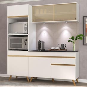 A Cozinha Compacta 3 peças com Leds MP2020 Veneza Up Multimóveis tem um excelente custo benefício e um amplo espaço interno. Produzida em MDP com acabamento acetinado (cerca de 20% de brilho), que garante maior durabilidade e resistência, possui corrediças metálicas (mais leveza no manuseio), pés retrô em polipropileno, que deixam o ambiente mais estiloso, puxadores em ABS e tampo em MDP 15mm com pintura de alta resistência. Os módulos são individuais e você pode montar da maneira que se adaptar melhor ao seu ambiente. O balcão possui tampo removível (compatível com pia de 120 cm). Para deixar sua cozinha mais bonita e organizada, possui módulo para forno e microondas, além de vidro reflecta e compartimento especial para utensílios mais altos. As luminárias em LED, que acompanham a cozinha, proporcionam um visual mais bonito e moderno, deixando o ambiente aconchegante e confortável. Com design minimalista e de fácil instalação, você pode escolher em qual lugar do móvel deseja fixar. Com luz brilhante, as luminárias funcionam com 3 pilhas AAA.