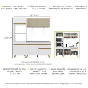 Cozinha - Altura: 203cm | Largura: 182cm | Profundidade: 31cm (aéreo) - 53cm (paneleiro e balcão com tampo)