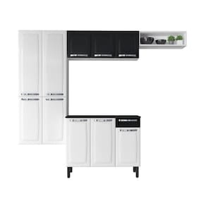 Com prateleiras bem divididas e aproveitamento eficiente para você guardar tudo, a linha rose é ideal para deixar a sua cozinha organizada. Beleza e design funcional: puxadores metalizados e modernos. Além de fáceis de manusear, são muito resistentes. Organização e bom gosto: opção de nicho para decorar. Beleza em cada detalhe: portas com estampo marcante e exclusivo. Nada de bagunça na cozinha: prateleiras bem-distribuídas para caber todos os utensílios e mantimentos. Proteção para durar mais: pintura eletrostática a pó, que dá brilho e protege o produto contra ferrugem e arranhões. Cuidado em cada detalhe: espaço interno na cor branca. TAMPO DE 15MM FABRICADO EM FF GRANITO ONIX Acabamento da Prateleira: Pintura Escala de Brilho da Prateleira: Semi-Brilho Acabamento da Gaveta: Pintura Escala de Brilho da Gaveta: Semi-Brilho Material do Puxador da Gaveta: Plástico Acabamento da Porta: Pintura Escala de Brilho da Porta: Semi-Brilho Material do Puxador da Porta: Plástico Acabamento dos Pés: Pintura Acompanha Tampo: Sim Altura dos Pés: 16 cm Ambiente Principal: Cozinha Complexidade da Montagem: Alta: deve ser montado por um montador especializado Cor: Branco/Preto Cor do Produto: Branco/Preto Cor Interna: Branco Escala de Brilho: Semi-Brilho Gaveta com Chave: Não Itens Inclusos: 1 Paneleiro, 1 Armário, 1 Nicho, 1 Balcão E Manual De Montagem. Linha ou Coleção: Rose Manual de Montagem e Instalação: https://cdn2.madeiramadeira.com.br/atributo/itatiaia-aco/1211098-coz-3p-balc.pdf Material da Gaveta: Aço Material da Porta: Aço Material da Prateleira: Aço Material do Fundo: Aço Material do Tampo: MDP Material dos Pés: Plástico Medida de cada item (A x L x P): Paneleiro 165x70x28cm | Armário 40x105x28cm | Nicho 22x70x26cm | Balcão 87x105x45cm Necessita Montagem: Sim O Balcão Acompanha Pia: Não Origem do Produto: Nacional Pés Reguláveis: Sim Peso: 51 kg Peso Máximo por Gaveta: 2 kg Peso Máximo por Prateleira: 10 Possui Pés: 04 Possui Portas: 10 Possui Prateleiras: 04 Possui recorte para Cooktop: Não Possui Rodízio: Não Recomendações de Uso, Manutenção e Limpeza: Pano Umedecido. Sapatas Niveladoras: Sim Sistema de Montagem: Parafusos. Suporta Até (kg): 80 kg Tipo de Corrediça da Gaveta: Telescópica Tipo de Dobradiça da Porta: Simples Tipo de Puxador da Gaveta: Externo Tipo de Puxador da Porta: Externo