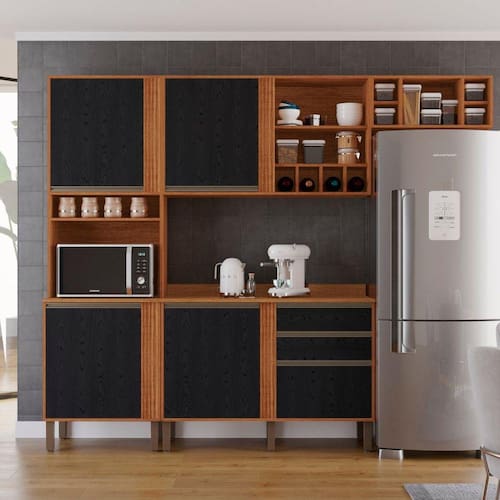 Você nunca imaginou que sua cozinha pudesse ficar tão organizada. Com a Cozinha Pérola, o espaço fica ainda mais convidativo e harmônico. E para maior praticidade em sua cozinha, o conjunto possui inúmeras características para facilitar o seu dia a dia, gavetas espaçosas para maior organização de seus utensílios, nicho para microondas e várias prateleiras internas. Tudo especialmente pensado para garantir toda a versatilidade que uma cozinha moderna precisa. Você não pode perder. Acabamento da Prateleira: Pintura UV Escala de Brilho da Prateleira: Fosco Acabamento da Gaveta: Pintura UV Escala de Brilho da Gaveta: Fosco Material do Puxador da Gaveta: MDF Acabamento da Porta: Pintura UV Escala de Brilho da Porta: Fosco Material do Puxador da Porta: MDF Acabamento dos Pés: Polipropileno Acompanha Tampo: Sim Altura dos Pés: 17 Altura Máxima dos Pés: 17.0000 Ambiente Principal: Cozinha codigo_ean: 7909903508008 Complexidade da Montagem: Média: pode ser montado por mais de uma pessoa e/ou necessite de maior conhecimento para montagem Cor: Cinamomo/Preto Cor do Produto: Cinamomo/Preto Escala de Brilho: Fosco Gaveta com Chave: Não Itens Inclusos: 1 Armário de Cozinha, Kit Ferragens e Manual de Montagem Linha ou Coleção: Pérola Manual de Montagem e Instalação: https://product-hub-prd.madeiramadeira.com.br/882787/documents/dee6e496-8996-4486-958b-883bc0b42b7b1694355manualperola01.pdf Material da Dobradiça/Corrediça da Porta: Aço Material da Gaveta: MDP Material da Porta: MDP Material da Prateleira: MDP Material do Tampo: MDP Material dos Pés: Polipropileno Medida de cada item (A x L x P): TORRE QUENTE 213,5cm X 66cmX44cm; BALCÃO 2 PORTAS 85,5cmX120cm X44cm; ARMÁRIO AÉREO PÉROLA 68,5cmX 120cm X 30,5cm; AÉREO GELADEIRA 30cmX 70cmX 30,5cm. Necessita Montagem: Sim O Balcão Acompanha Pia: Não Origem do Produto: Nacional Pés Reguláveis: Sim Peso: 104,9 kg Peso Máximo por Gaveta: 3 kg Peso Máximo por Prateleira: 5 kg Possui Pés: 10 Possui Portas: Sim Possui Prateleiras: Sim Possui recorte para Cooktop: Não Possui Rodízio: Não Produto Montado: Sim Recomendações de Uso, Manutenção e Limpeza: Para limpeza utilize apenas pano umedecido com água. Sapatas Niveladoras: Sim Sistema de Montagem: Parafusos, pregos, cavilhas, corrediça, puxador. Suporta Até (kg): 40 kg Tamanho Indicado da Pia: Não possui. Tipo de Corrediça da Gaveta: Metálica Telescópica Tipo de Dobradiça da Porta: 35 mm Tipo de Puxador da Gaveta: Externo Tipo de Puxador da Porta: Externo