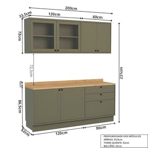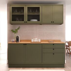 A Cozinha Compacta 4 Peças Sevilha é composta por peças essenciais para sua cozinha. Com estilo moderno e sofisticado, agrega beleza ao ambiente. Todos os puxadores são metálicos e pontuais e as dobradiças possuem amortecimento, de forma que proporcione resistência e funcionalidade ao produto. A Cozinha é produzida 100% em MDF, além de possuir corrediças telescópicas nas gavetas que proporcionam maior abertura e um deslizamento suave e silencioso. Acompanha 1 tampo de 80cm e 1 tampo de 120cm Acabamento da Prateleira: Pintura Escala de Brilho da Prateleira: Semi-Brilho Acabamento da Gaveta: Pintura Escala de Brilho da Gaveta: Semi-Brilho Material do Puxador da Gaveta: Metal Acabamento da Porta: Pintura Escala de Brilho da Porta: Semi-Brilho Material do Puxador da Porta: Metal Acompanha Rodapé Decorativo: Não Acompanha Tampo: Sim Ambiente Principal: Cozinha Balcão Suporta Pia: Sim codigo_ean: 7900288122698 Complexidade da Montagem: Alta: deve ser montado por um montador especializado Cor: Verde Hill Cor do Produto: Verde Hill Cor Interna: Verde Hill Escala de Brilho: Semi-Brilho Espessura do Tampo: 30 mm Gaveta com Chave: Não Itens Inclusos: 1 Cozinha, Kit Ferragens e Manual de Montagem Linha ou Coleção: Sevilha Manual de Montagem e Instalação: https://product-hub-prd.madeiramadeira.com.br/542143991/documents/96e8b99e-e13b-4974-a13b-d9576a80487c2854755489017447249692639.pdf Marca: Herval Material da Dobradiça/Corrediça da Porta: Metálica Material da Gaveta: MDF Material da Porta: MDF Material da Prateleira: MDF Material do Fundo: mdf Material do Tampo: MDF Medida de cada item (A x L x P): Balcão: L 120cm x A 86,5cm x P 52cm; Aéreo: L 120cm x A 72cm x P 33,5cm; Balcão: L 80cm x A 86,5cm x P 52cm; Aéreo: L 80cm x A 72cm x P 33,5cm; Tampo: L 80cm x A 10cm x P 52,5cm; Tampo: L 120cm x A 10cm x P 52,5cm; modular: Sim Necessita Montagem: Sim O Balcão Acompanha Pia: Não Origem do Produto: Nacional Peso: 151,251 kg Peso Máximo por Gaveta: 5 kg Peso Máximo por Prateleira: 5 kg Possui Pés: Não Possui Portas: Sim Possui Prateleiras: Sim Possui recorte para Cooktop: Não Possui Vidro: Sim Produto Montado: Sim Recomendações de Uso, Manutenção e Limpeza: Recomenda-se a utilização de pano seco. Sistema de Montagem: Parafuso e Minifix Suporta Até (kg): 30 kg Tamanho Indicado da Pia: 120cm Tamanho Indicado do Tampo ou Pia: 120cm Tipo de Corrediça da Gaveta: Metálica Telescópica Tipo de Dobradiça da Porta: 35 mm Tipo de Puxador da Gaveta: Externo Tipo de Puxador da Porta: Externo