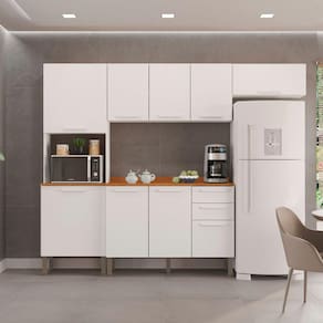 Você nunca imaginou que sua Cozinha pudesse ficar tão organizada. Com este Armário de Cozinha Combo Bella 01 o espaço fica ainda mais convidativo e sempre pronto para preparar pratos incríveis, otimizando o espaço para guardar seus utensílios. Confeccionado com materiais de resistência, qualidade e inovação ele é a melhor opção para completar o ambiente, cores modernas que combinam com tudo que escolher. Acabamento da Prateleira: Pintura Escala de Brilho da Prateleira: Brilhante Acabamento da Gaveta: Pintura UV Escala de Brilho da Gaveta: Brilhante Material do Puxador da Gaveta: MDF Acabamento da Porta: Pintura Escala de Brilho da Porta: Brilhante Material do Puxador da Porta: MDF Acabamento dos Pés: Pintura Acompanha Tampo: Sim Altura dos Pés: 16 Altura Máxima dos Pés: 16.0000 Ambiente Principal: Cozinha codigo_ean: 7909903501597 Complexidade da Montagem: Alta: deve ser montado por um montador especializado Cor: Branco Cor do Produto: Branco Escala de Brilho: Brilhante Gaveta com Chave: Não Itens Inclusos: 1 Torre Quente, 1 Armário Aéreo triplo, 1 Balcão, 1 aéreo geladeira, Manual de Montagem e Kit Ferragens. Linha ou Coleção: Bella Manual de Montagem e Instalação: https://product-hub-prd.madeiramadeira.com.br/882197/documents/f6765486-d610-4258-94bf-5703e33c6cce1686157manualvalencia01.pdf Material da Dobradiça/Corrediça da Porta: Metálica Material da Gaveta: MDP Material da Porta: MDP Material da Prateleira: MDP Material do Fundo: MDF Material do Tampo: MDP Material dos Pés: Polipropileno Medida de cada item (A x L x P): Torre 200,5cmx57cmx36,5cm, Armário Aéreo Triplo 54,5cmx120cmx26cm, Balcão 85,5cmx120cmx36,5cm, aéreo geladeira 30cmX71cmX26cm modular: Sim Necessita Montagem: Sim O Balcão Acompanha Pia: Não Origem do Produto: Nacional Pés Reguláveis: Sim Peso: 77 kg Peso Máximo por Gaveta: 5 kg Peso Máximo por Prateleira: 5 kg Possui Pés: 10 Possui Portas: Sim Possui Prateleiras: Sim Possui recorte para Cooktop: Não Possui Rodízio: Não Produto Montado: Sim Recomendações de Uso, Manutenção e Limpeza: Limpar com flanela limpa e seca. Não usar produtos abrasivos. Sapatas Niveladoras: Sim Sistema de Montagem: Parafusos e cavilhas Tamanho Indicado da Pia: Não possui. Tipo de Corrediça da Gaveta: Metálica Telescópica Tipo de Dobradiça da Porta: 35 mm Tipo de Puxador da Gaveta: Externo Tipo de Puxador da Porta: Externo