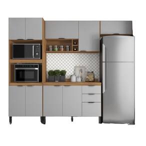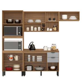 A cozinha modular FIRENZE FI0003 é formada por uma torre quente com espaço para dois fornos de até 44L, um aéreo de geladeira 70cm porta basculante com pistão a gás, um aéreo 2 portas 120cm sendo uma com pistão a gás com abertura para cima também com nicho e porta vinhos, um balcão 120cm com 3 portas e 2 gavetas com tampo que pode ser substituído por pia. Seus pés são de polipropileno reguláveis se adequando as condições do chão, puxadores pretos com design moderno, corrediças e dobradiças metálicas. Estruturado em MDP com revestimento ultravioleta e acabamento fosco.