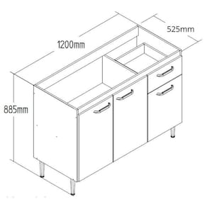 1x Balcão para Cozinha 3 Portas e 1 Gaveta 120 Cm Branco Largura: 120 cm Altura: 88,5 cm Peso: 33,4 kg Profundidade: 52,5 cm Necessita Montagem: Sim