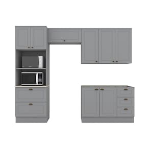 Itens Inclusos: 1 Torre Quente, 1 Aéreo 1 Porta Basculante, 1 Aéreo 3 Portas, 1 Balcão Pia, Kit Ferragens e Manual de Montagem.