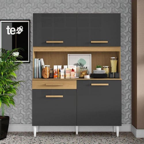 Cozinha Compacta 4 Portas 1 Gaveta Marina Aramóveis - Preto