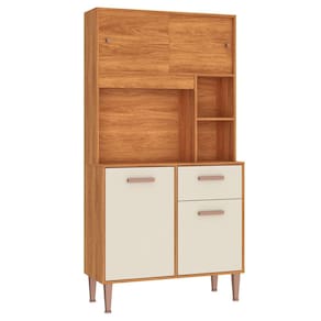 - Móvel e portas superiores na cor Manchester, Gaveta e portas inferiores na cor Champagne